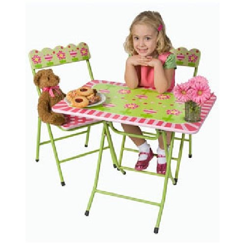 Chairs are 14"W x 27"H x 14"D and Table is 26??W x 22"H x 17??D. Ages 3 and up. Please add for oversize shipping.